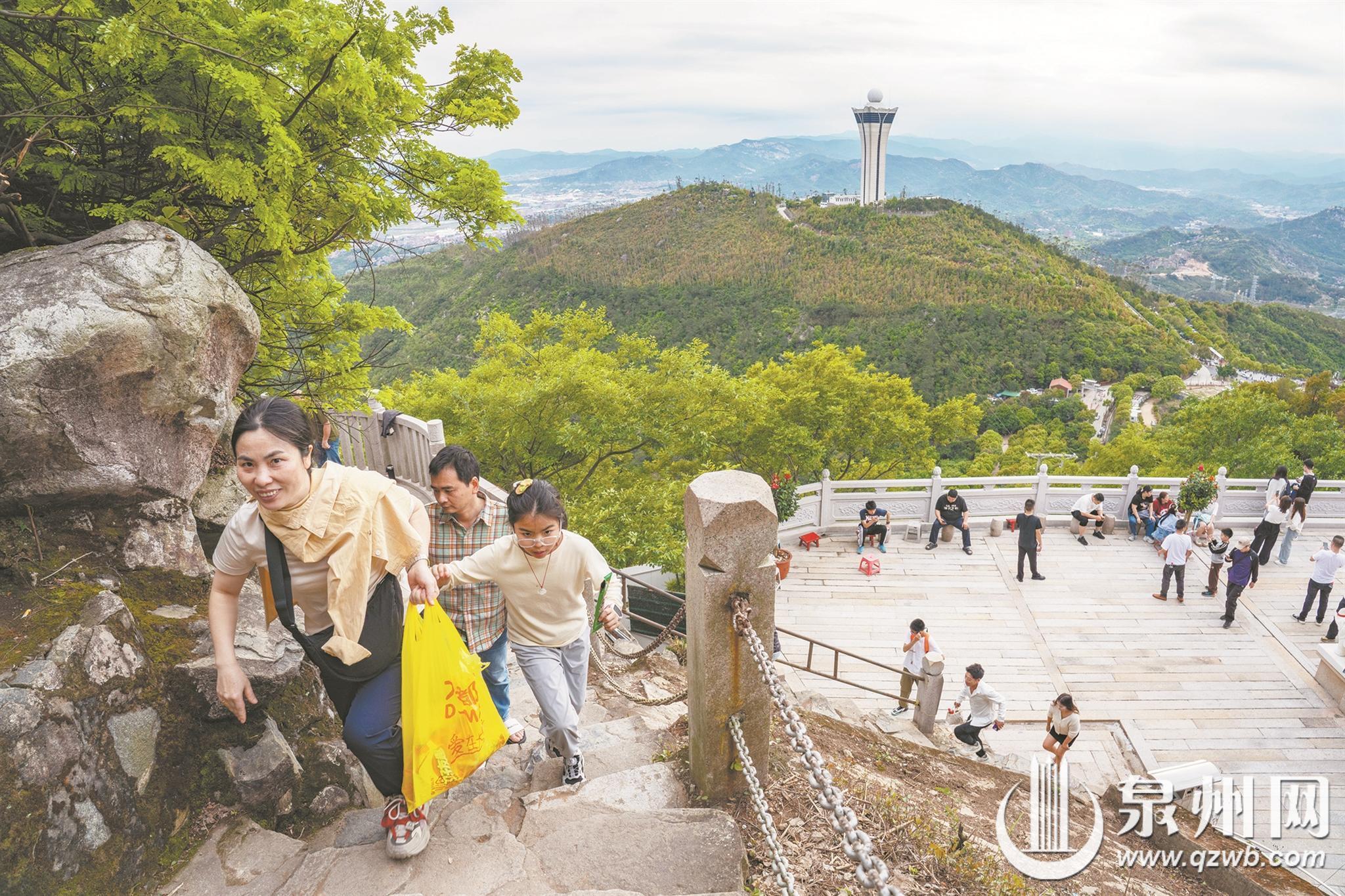 近日,泉州时晴时雨。趁着雨后天晴,不少市民、游客来到晋江紫帽山,登上凌霄塔观景台,一览泉州城市美景。凌霄塔观景台视野开阔,能见度高的时候,伫立山顶,一幅泉州古城新区的美好画卷在眼前铺展:沿着晋江母亲河奔流向海的轨迹寻找,可以看到九日山、金鸡拦河闸、双阳山、清源山、晋江入海口、泉州湾,还能看到石狮、晋江的部分区域,各处熟悉的桥梁和楼宇星罗棋布,令人目不暇接。(融媒体记者陈起拓 文/图)