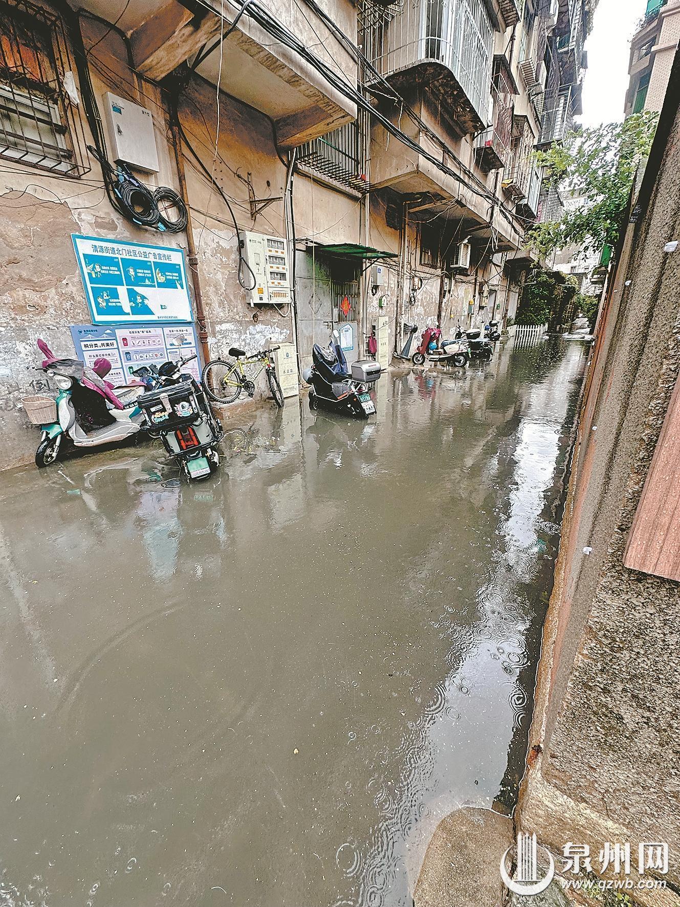 住在丰泽区清源街道北门社区北供新村的居民施先生反映,每逢大雨,居民的进出通道便会严重积水,形成一条“小河”,给日常出行带来极大不便。