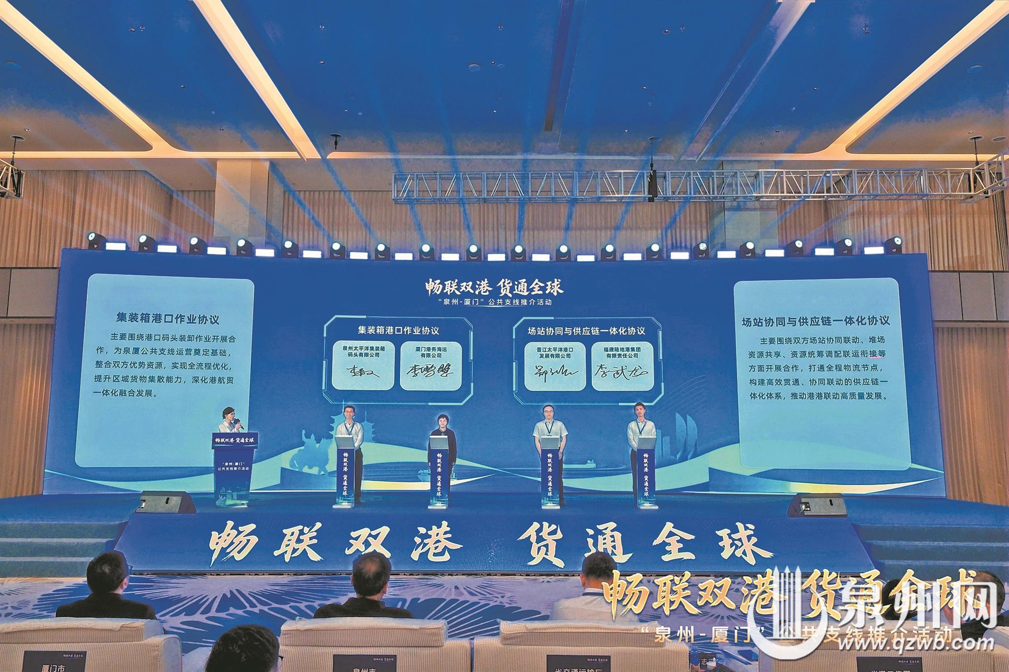 泉州网4月11日讯 (融媒体记者陈小芬 通讯员林泳坤 黄慧梅 黄燕燕 文/图)昨日下午,以“畅联双港 货通全球”为主题的“泉州—厦门”公共支线推介会在泉州举办。活动聚焦新开通的“泉州—厦门”公共支线服务,推动泉州港与厦门港深化合作,打造区域物流新通道,助力泉州内外贸高质量发展。