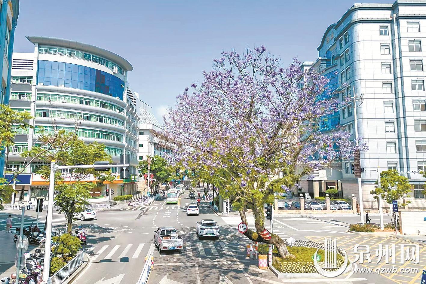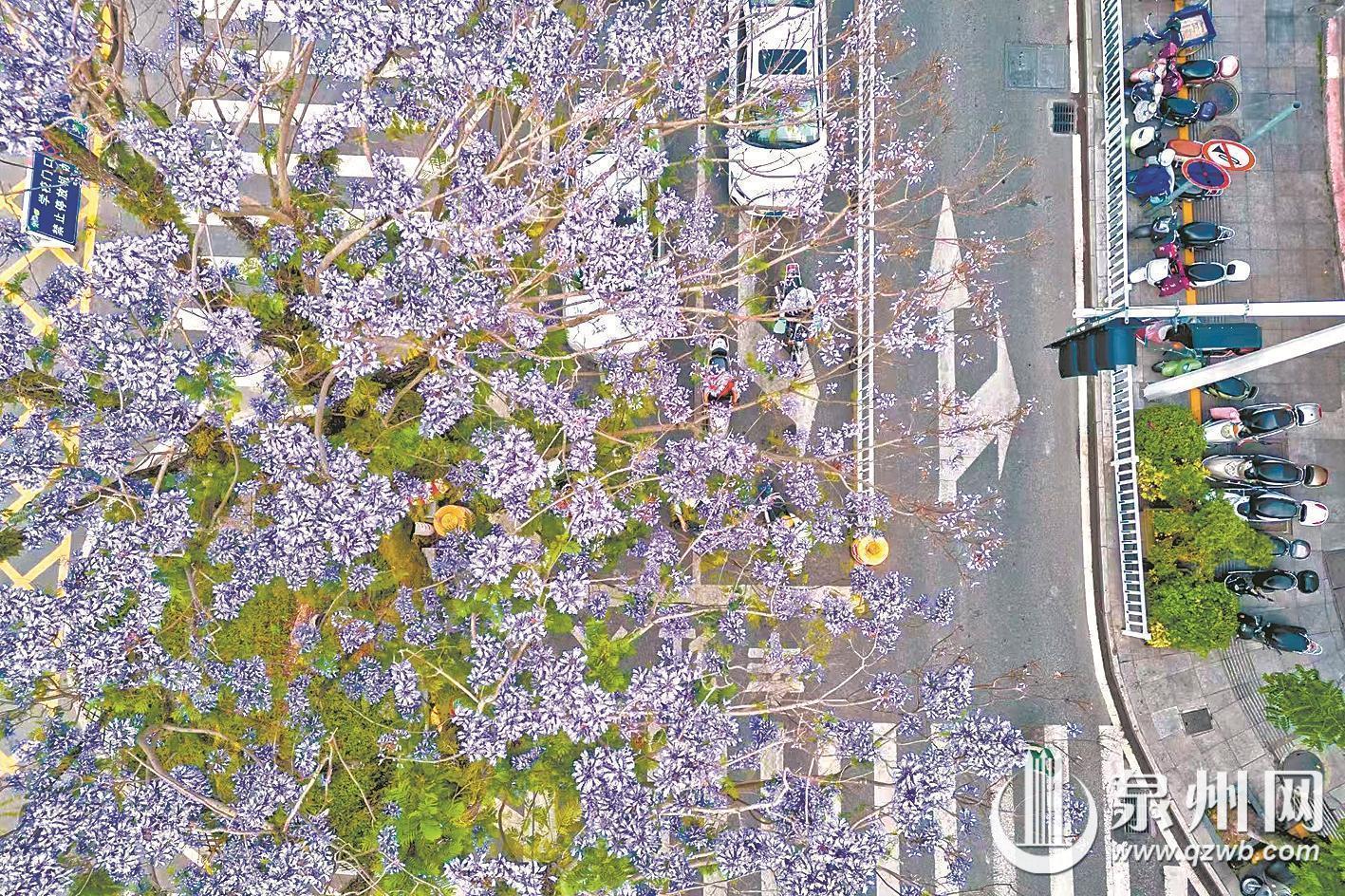 提起这株蓝花楹,每一位德化人心中都满是温情与眷恋。百年来,它静静矗立在浔北路街头,扎根城市热土,见证着德化的岁月变迁与城市发展,早已成为当地家喻户晓的城市地标,更是无数市民心中难以割舍的情感寄托。每当暮春初夏来临,满树繁花肆意绽放,一簇簇梦幻的蓝紫色花朵缀满枝头,层层叠叠、如云似雾,把整条街道晕染成浪漫的紫色海洋。微风拂过,细碎的花瓣纷纷扬扬飘落,铺就一地温柔的花径,往来行人无不驻足凝望、拍照留念;放学的孩子在花树下嬉戏奔跑,闲暇的市民在树荫下闲谈休憩,无数温馨的日常瞬间,都与这抹绝美的蓝紫色交织在一起,成为德化人刻在心底的城市记忆。