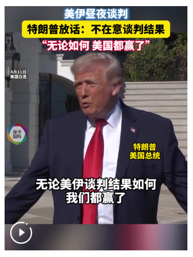 此前,美国总统特朗普11日在白宫接受记者采访时说,无论美伊谈判结果如何,美国“都赢了”。特朗普说:“能不能达成协议对我来说没什么区别。”(记者:邹学冕、杨恺、梁子齐、刁慧琳、胡友松;视频:孙硕、张枫)