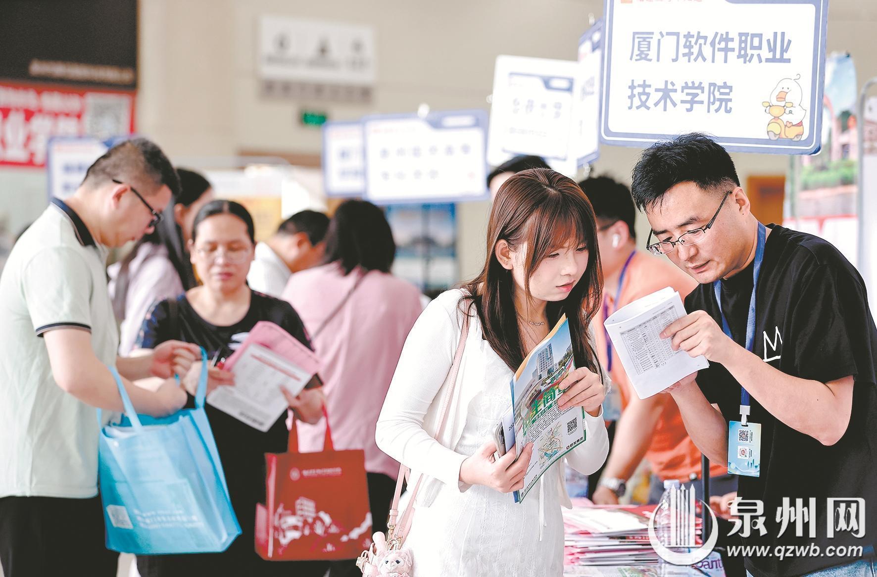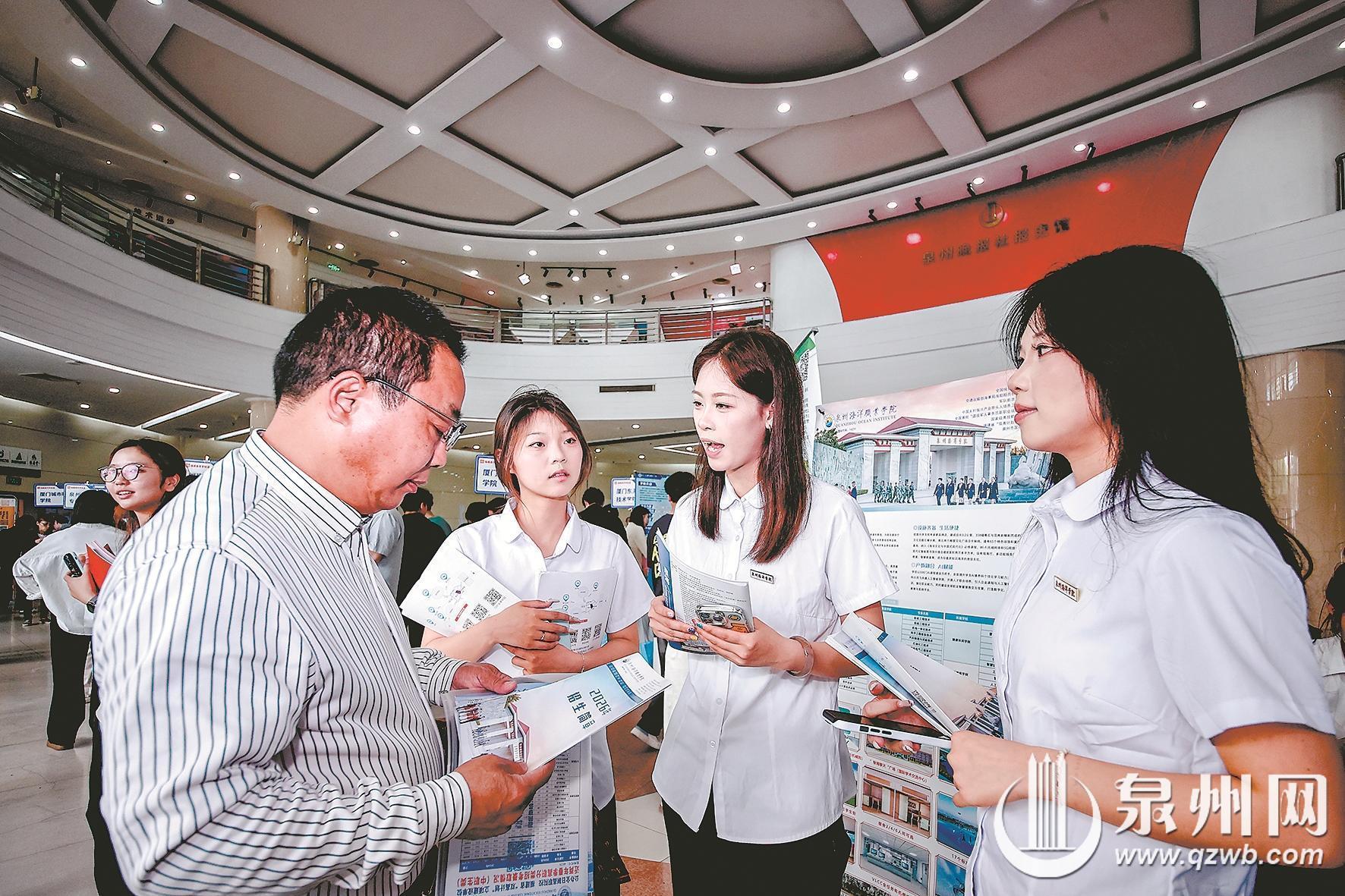 泉州华侨职校的蔡同学与父亲一早便来到咨询会现场,父子二人分头行动、高效打探。蔡同学成绩排名靠前,将目标锁定在黎明职业大学、漳州职业技术学院等院校的食品类专业。“网上信息虽多,但总觉得不够踏实,泉州晚报社搭建的权威对接平台,能够面对面和老师沟通,横向对比院校实力、专业培养、就业去向,让孩子填报志愿时心里更有底。”蔡同学的父亲坦言,现场咨询能有效化解信息差,让志愿选择更具针对性。