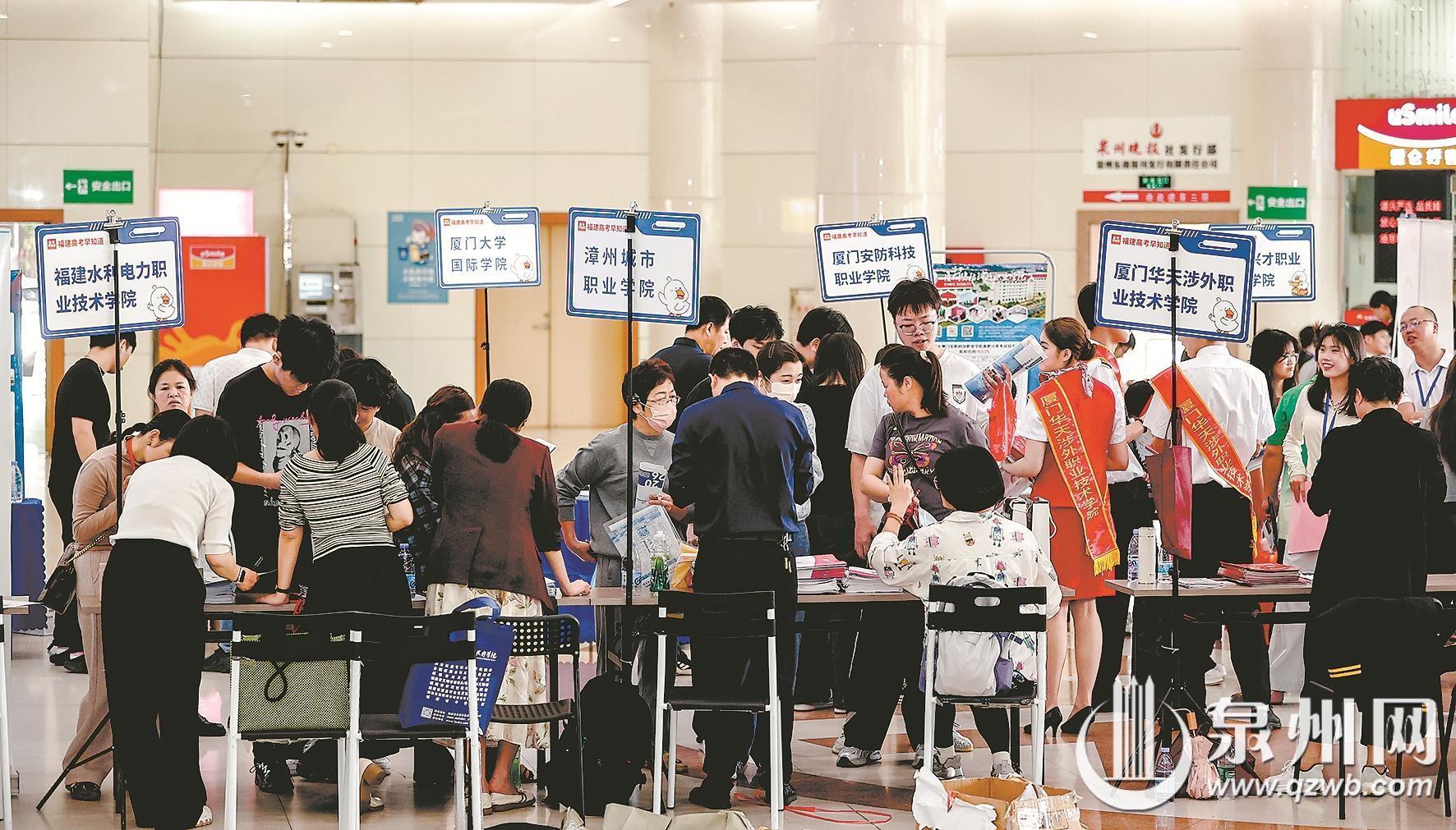 当日,有不少考生和家长提前抵达咨询会现场,只为第一时间与心仪院校招生老师深入交流。前来咨询的不仅有泉州各县(市、区)的考生和家长,还有不少周边地市学子专程慕名而来,各个咨询台前人头攒动,咨询声、讲解声此起彼伏。
