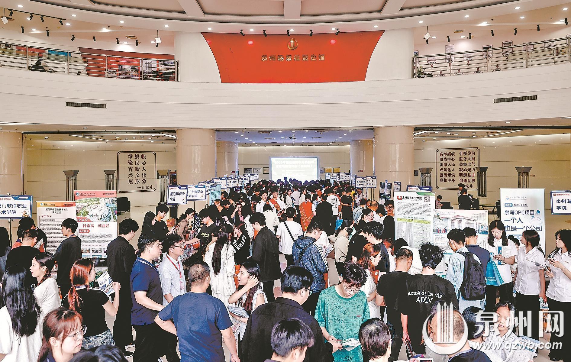 日前,由福建省高等教育学会招生工作分会、泉州晚报社联合主办的2026年福建省高职分类招考志愿填报咨询会(泉州场)在泉州晚报大厦一楼举行。活动从8点半持续至12点,省内近40所高职(专科)批重点院校招生负责人齐聚一堂,面对面为考生与家长解读招生政策,解析专业特色,指导志愿填报。