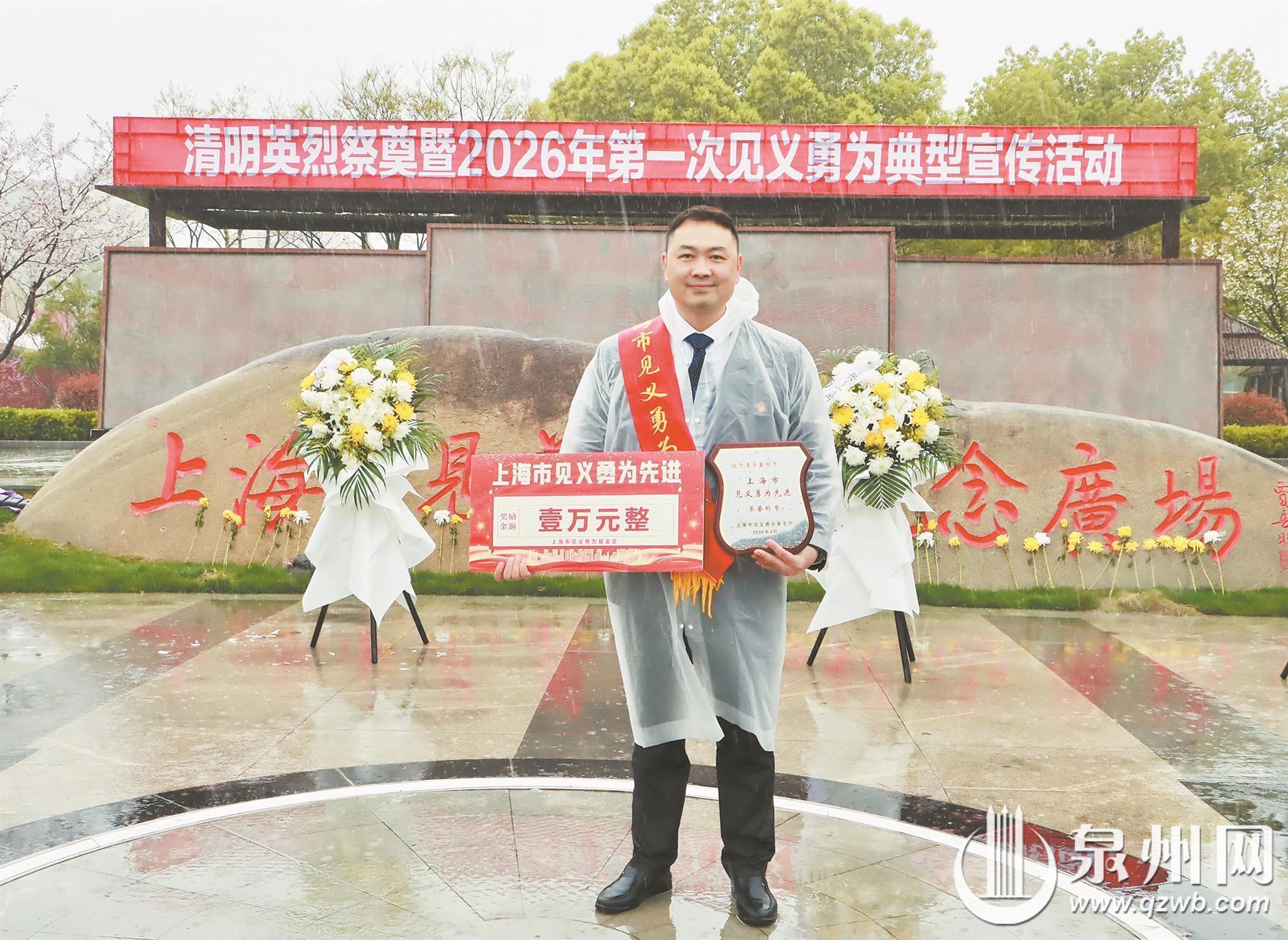 泉州网4月14日讯 (融媒体记者林志安/文 受访者/供图)记者昨日了解到,数月前在上海勇救落水男子的咱厝人连子鑫,近日获评“上海市见义勇为先进”荣誉称号,他将1万元分成两份,分别捐献给上海市青浦区和泉州市泉港区两地的慈善组织。