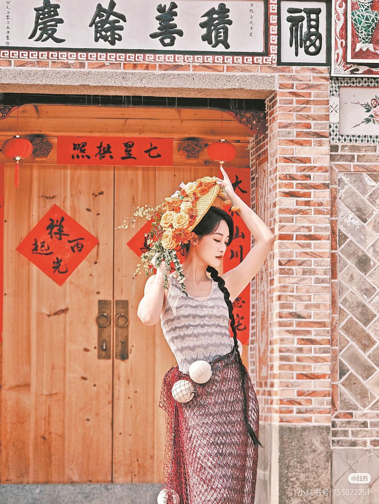 同样作为福建“三大渔女”之一的蟳埔女,其特有的头饰簪花围也迷倒了蓝盈莹。簪花围的美,美在融合、更见创新。它以泉州为土壤,以海丝为脉络,将中原礼仪、闽南民俗、海洋文明融为一体,生成多彩的美学表达。