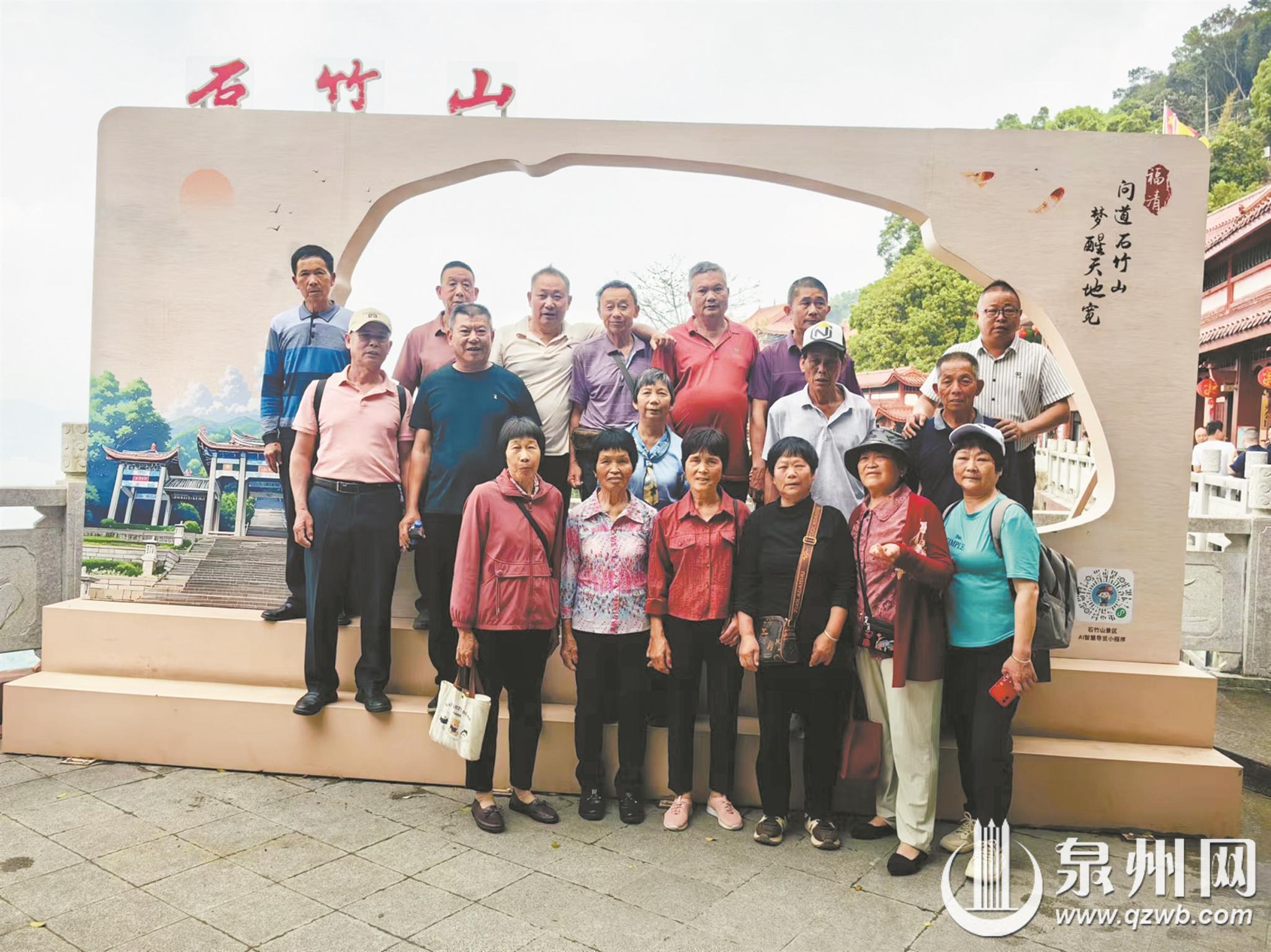 “托‘西瓜’的福了。”4月12日早晨6时许,永春县东关镇东关村的20多位老人早早来到“陈西瓜”家附近的村口集合。将近7时,在“陈西瓜”的热情组织下,20多位六七十岁的老人,依序登上旅游大巴,前往福州福清旅游。这些老人中,相当一部分是第一次走出东关村,到外面游玩。因此,老人们格外开心激动,一路上被沿途风景所吸引,欢声笑语不断。上午9时许,旅游车顺利抵达福州福清石竹山景区。老人们一下车便被当地的美丽景色所吸引。大家随后在“陈西瓜”联系好的导游带领下,乘坐索道缆车登上山顶,居高临下饱览四周美景。其间,老人们游玩了山顶的各处景点……午饭时间,老人们在“陈西瓜”的热情招呼下,到景区内一旅游餐厅品尝起当地特色美食。午饭后,老人们精神抖擞地来到另一景点游玩。随后,老人们乘坐电瓶观光车来到万福寺参观。
