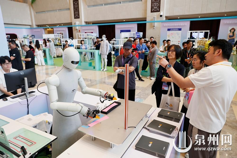 泉州时尚产业供应链对接活动上,智能商演机器人吸睛。(陈晓东/摄)