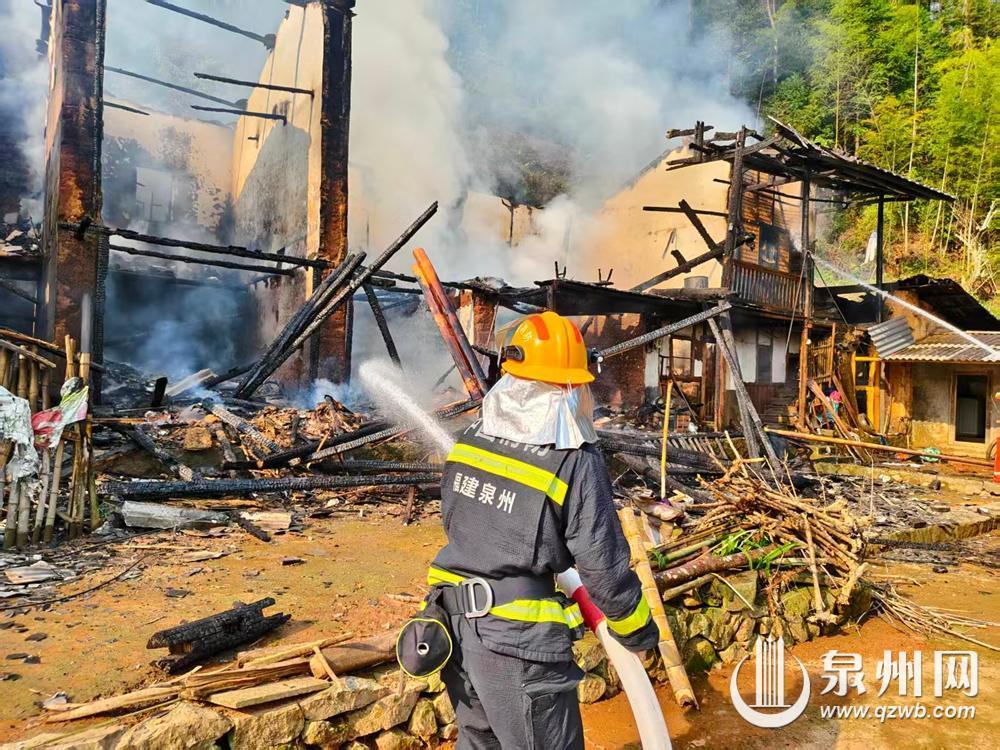 泉州网4月18日讯(融媒体记者陈明华 通讯员黄钰颖 郑伟灿 文/图)近日,德化县美湖镇一栋民房突发火灾,老化电气线路故障引燃可燃物,导致整栋房屋被烧毁坍塌,所幸未造成人员伤亡。
