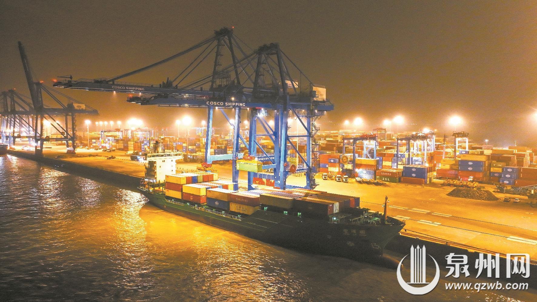 泉州网4月20日讯(通讯员黄慧梅 黄燕燕 林燕 融媒体记者吴丽娇 文/图)4月18日凌晨,运载台湾日用品的集装箱轮“丰泽园”在泉州港石湖作业区缓缓靠泊,卸货后又装载泉州本地生产的食品及生活用品起航前往台湾。这标志着泉州至台湾本岛集装箱航线在每周三运营的基础上,新增周末船班,进一步便利闽台两地货物运输、经贸往来。