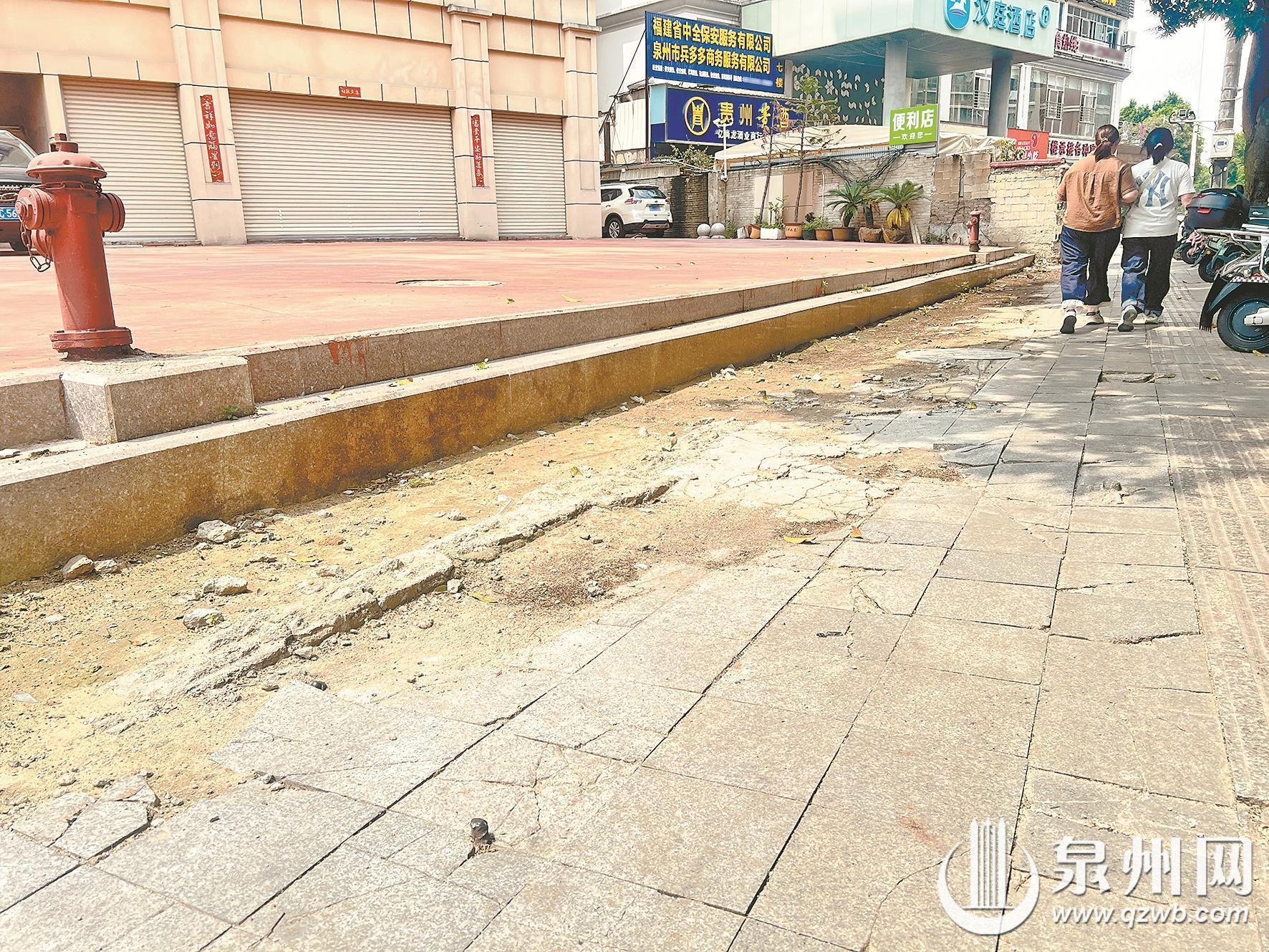 泉州网4月20日讯(融媒体记者张小玲 张圆圆 文/图)近日,市民郭先生致电96339反映,泉州市区西湖街东段南侧有一段人行道破损,影响行人通行,希望部门尽快修复。