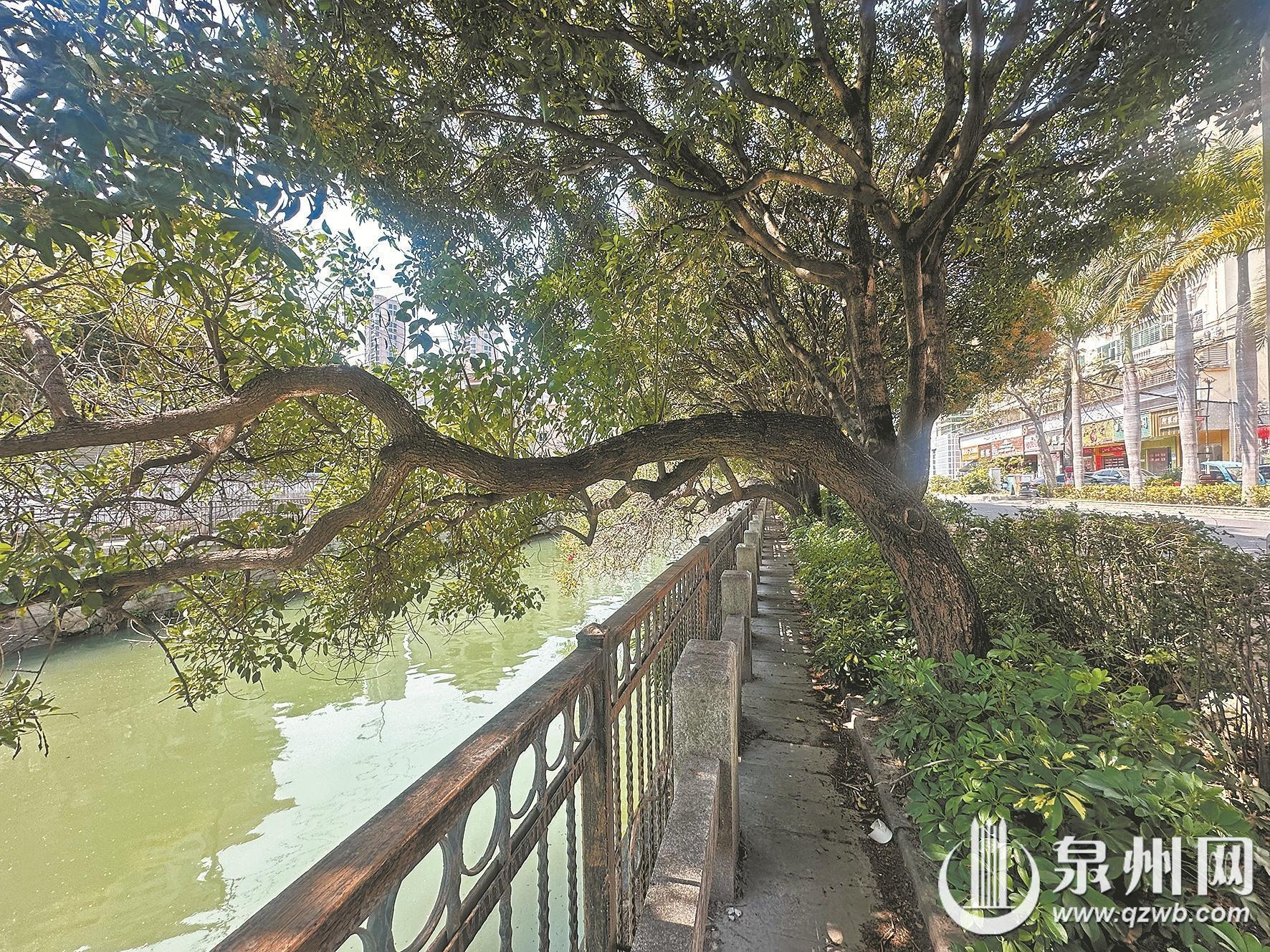 泉州网4月20日讯(融媒体记者刘燕婷 黄东阳 文/图)近日,市民吴女士致电泉州晚报社24小时热线96339反映,泉州市区田淮街的内沟河边,有多棵树“歪脖子”,树干大幅向河面倾斜,乍一看让人误以为树木发生了倒伏。吴女士好奇,这些树木为何会“歪着长”?
