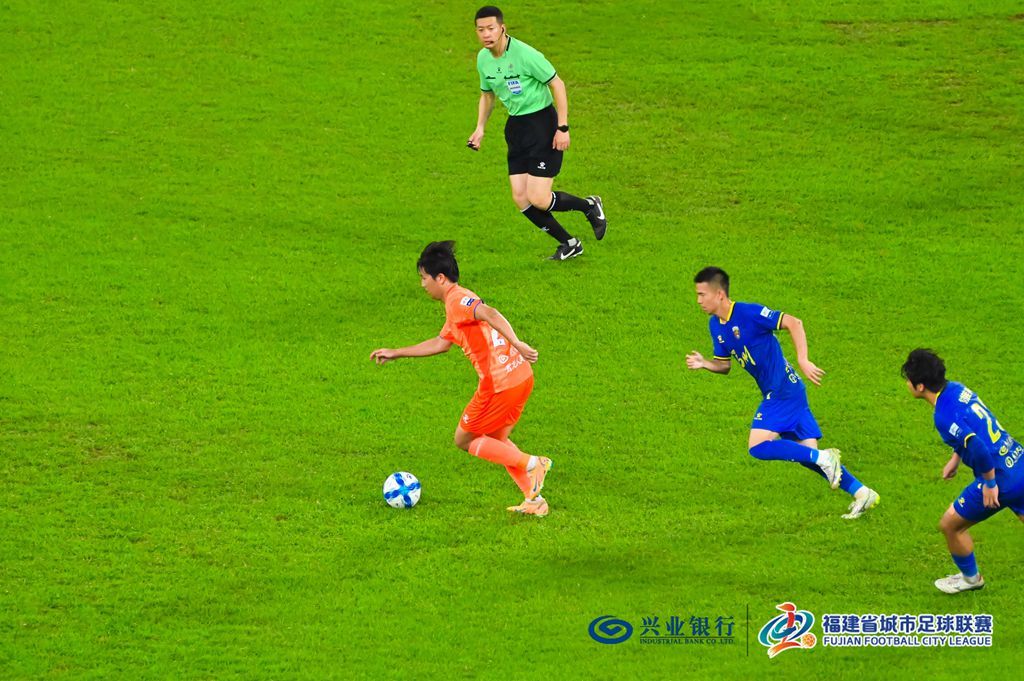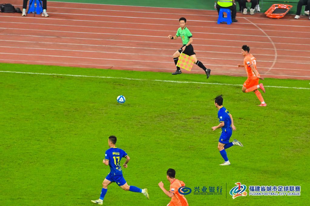 下半场,双方易边再战。经过休息与调整后,双方进行战术调整。比赛进行到51分钟,厦门队9号球员江泽源利用角球机会头球建功,将场上比分扩大至2∶0。随后,福州队进行换人调整,试图通过加强进攻改变场上局面。第80分钟,厦门队刚换上场的33号球员沈文剑,首次触球就带球突破至前场,以一脚劲射破门,帮助厦门队3球领先。