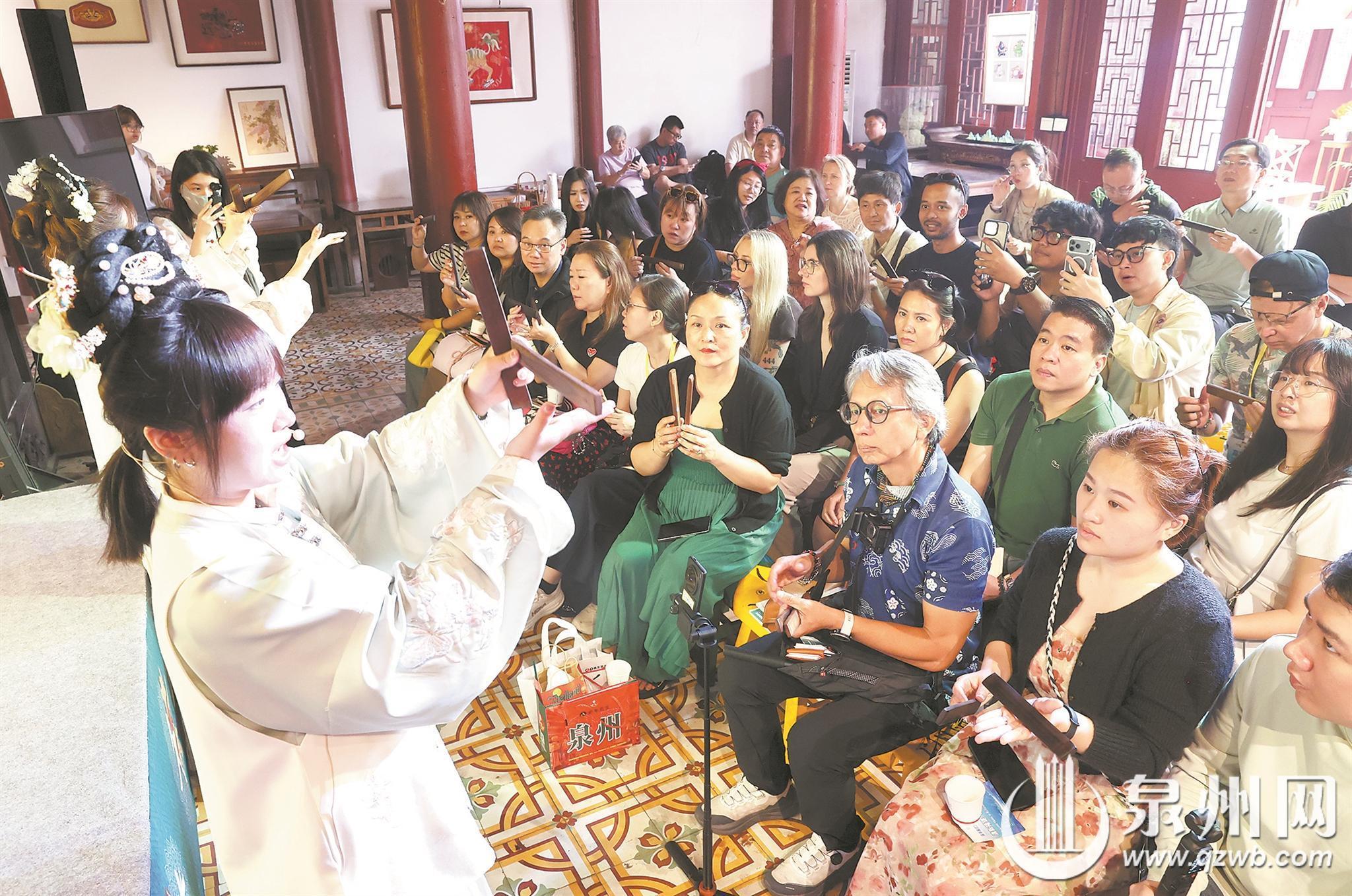 泉州网4月20日讯(融媒体记者谢若禹 王柏峰 文/图)4月17日,约40名来自美国、法国、新加坡等十个国家的旅行商及内容创作者代表到访泉州,开展“踩线”活动。嘉宾们重点考察世遗景点开元寺、参与南音学唱、提线木偶互动并体验簪花围,沉浸式感受海丝文化、非遗传承和泉州本土生活。