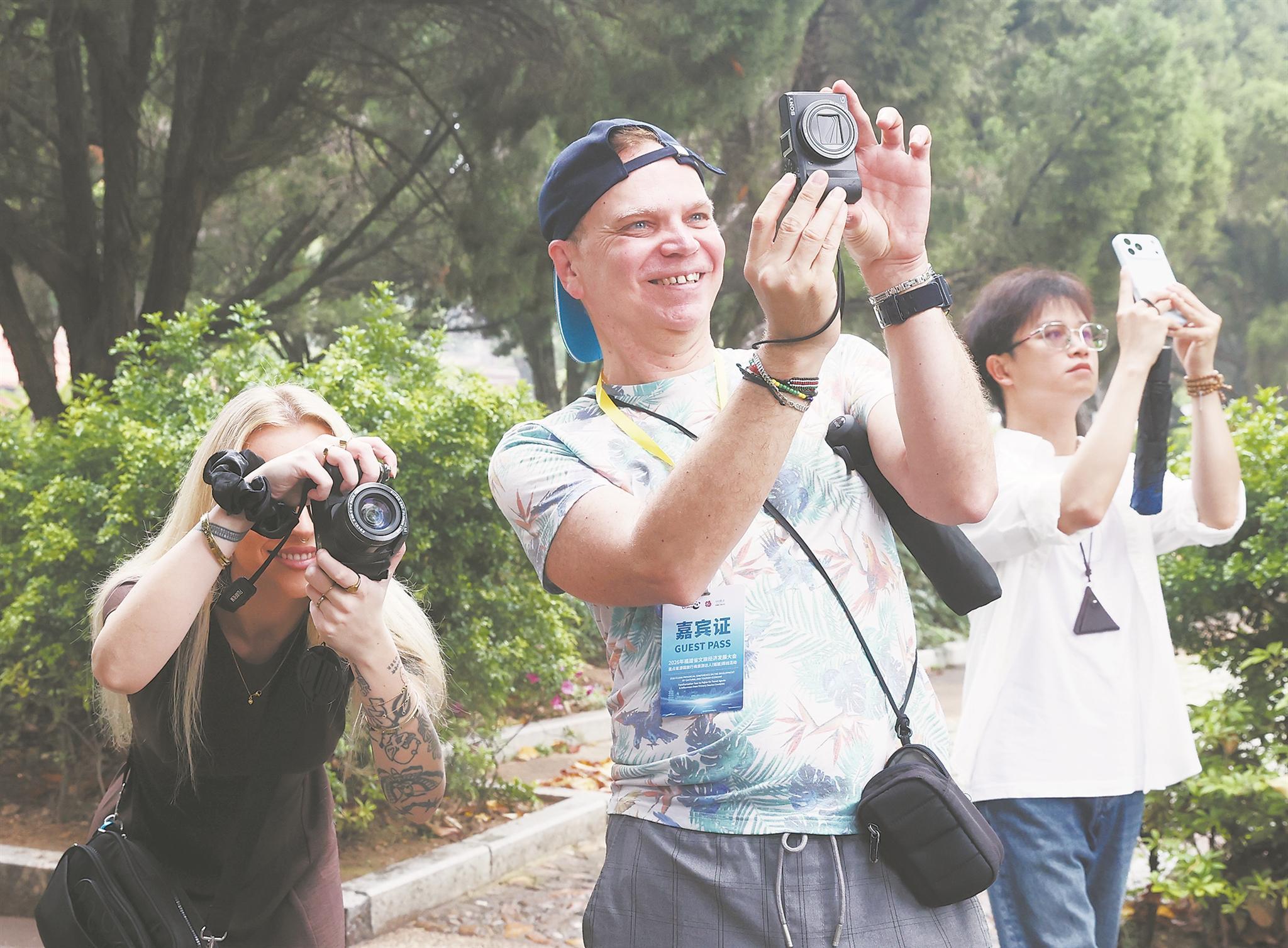 当日9时,代表团在开元寺依序参观了大雄宝殿和东西塔。他们当中有人手持石花膏饮品慢走畅聊,有人举起相机随手拍摄,很快就沉浸在这份松弛感当中。“气候很舒适,潮湿的天气让我感觉像回到法国。”法国旅行商Philippe和搭档Estee说,他们驻足在“猴行者”浮雕前合影,聆听麒麟壁与铁拐李的故事,丰富的文化底蕴让他们记忆深刻,作为国际旅游策划专家,Philippe感到灵感十足,“法国游客非常喜欢文化、历史等相融合的旅游体验,这对我们推荐旅游路线非常有帮助。”