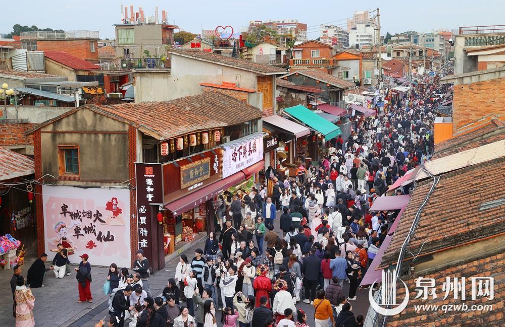 “五一”假期将至,泉州文旅市场持续升温,西街游客渐增。(王柏峰 摄)