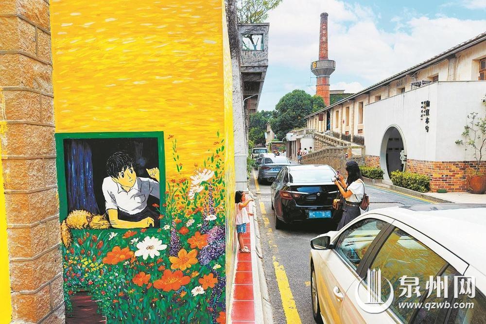 鲤城区源和1916创意产业园内,一处动漫风格的墙绘成为网红打卡点。 (陈晓东 摄)