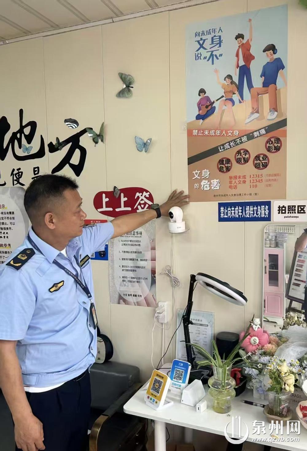 监管人员张贴宣传海报,广泛宣传文身对未成年人身心健康、学业前途的潜在危害。