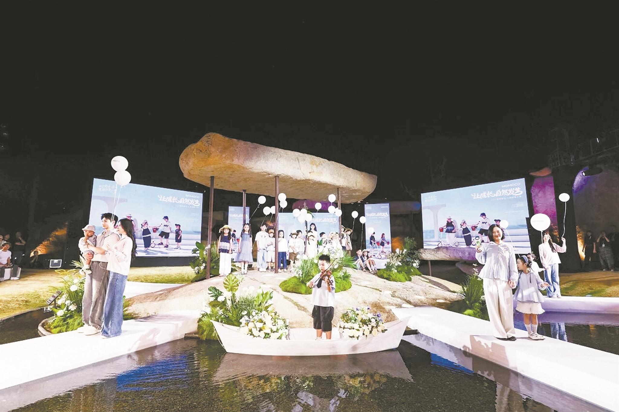 作为2026泉州时尚周系列配套活动,4月19日晚,“时尚丰泽·童装实景大秀”在磐云艺术公园精彩上演。活动由丰泽区人民政府主办,以“巨石阵”构筑秀场。夜幕下光影流转,童模们踏石而行、逐风走秀,演绎街头潮流、运动活力等多元童装风格。