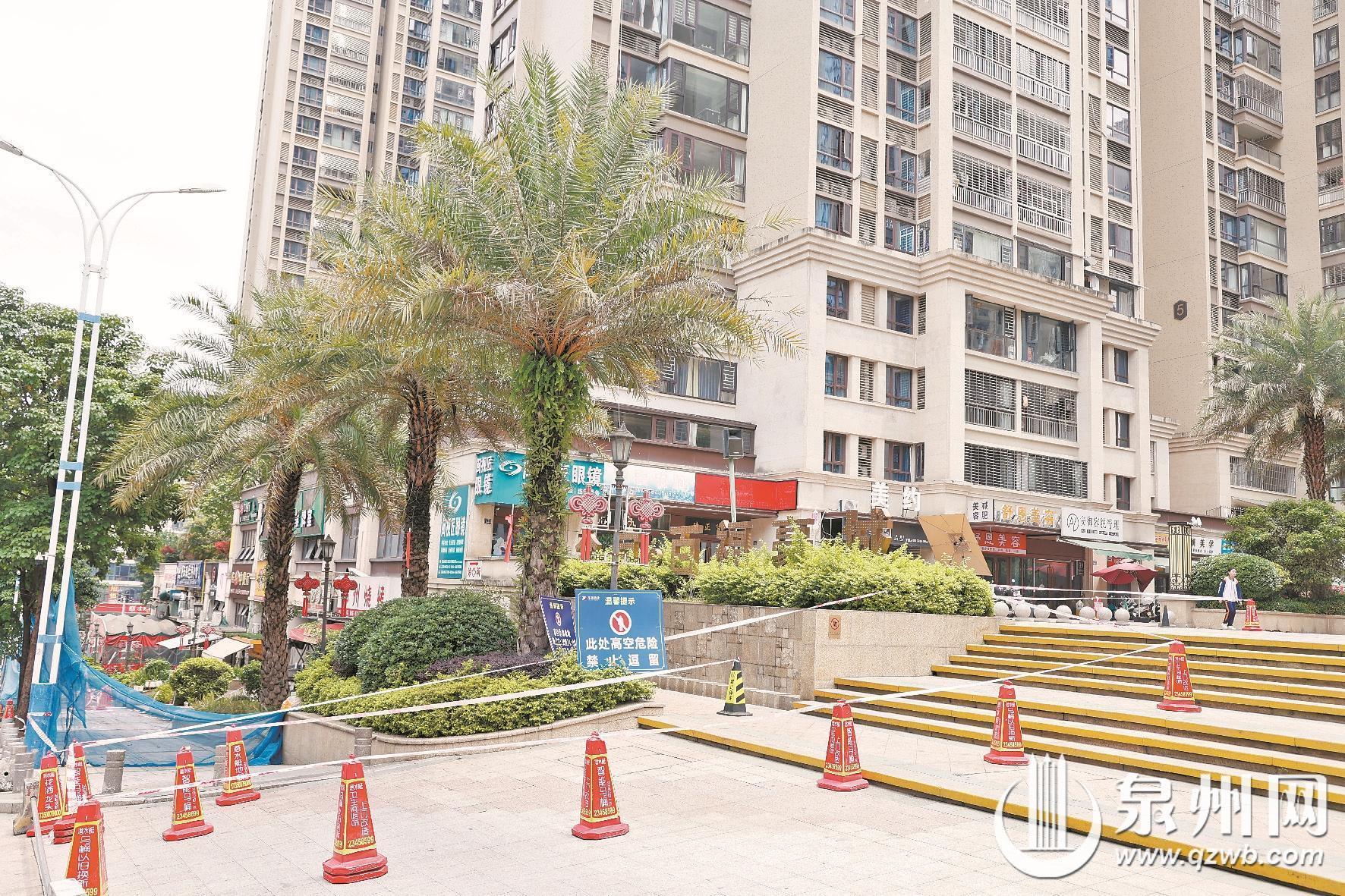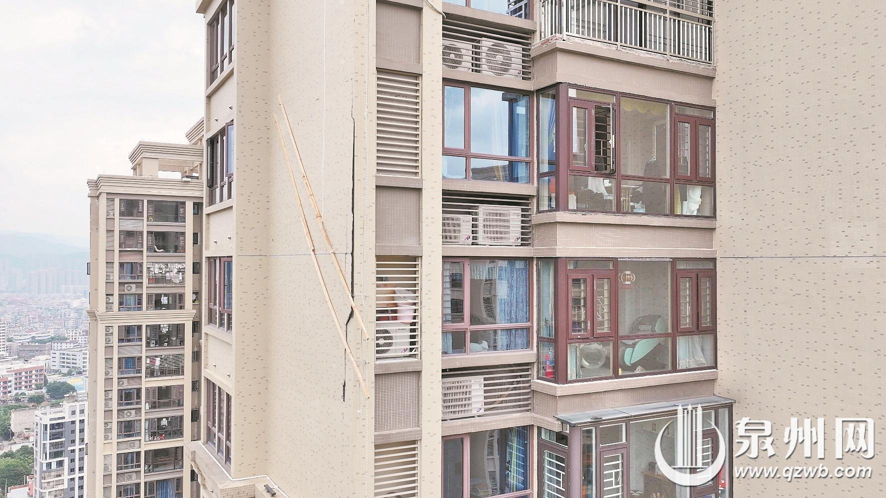 随后,记者来到小区物业服务中心。泉州市宏骏物业管理有限公司工作人员林先生介绍,小区长期开展外墙日常巡查工作。20日下午3时许,保安巡逻时发现3号楼外墙装饰面开裂,之后用无人机辅助确认。发现隐患后,物业第一时间拉起警戒线、设置警示牌,通知楼下商铺停业,并用沙袋做好防护,同时上报并协调社区、住建局、交警等部门。当晚,在交通管制情况下,开发商安排“蜘蛛人”对外墙进行了临时加固。为彻底消除隐患,物业及开发商计划让“蜘蛛人”将开裂区域全部敲除,后续进行外墙漆面涂刷修复,尽快完成全部整改工作。
