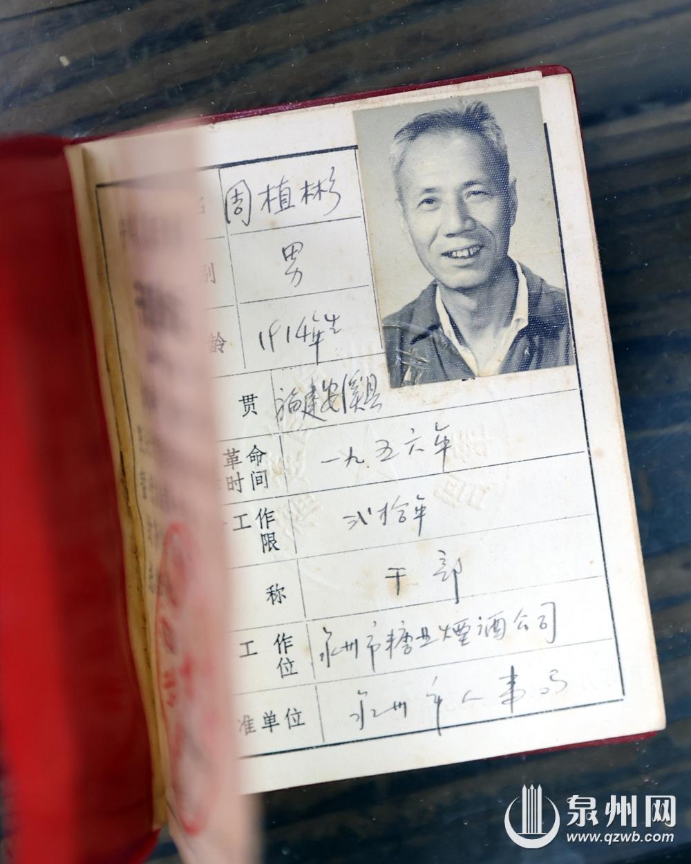 周植彬曾入职泉州市糖业烟酒公司,这是其工作证。