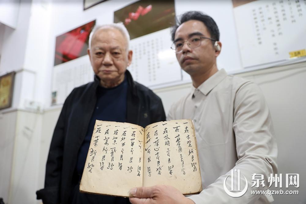 周贤琅、周孙家父子共同展示茶庄的老账本
