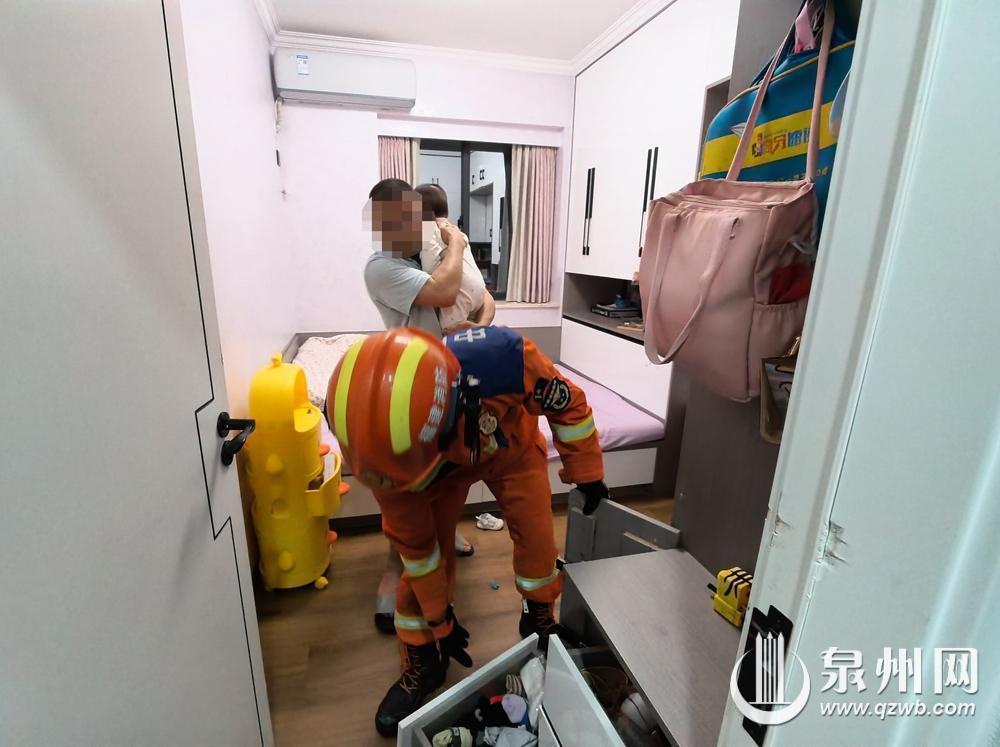 泉州网4月25日讯(融媒体记者林志安 通讯员张伟斌 文/图)4月23日晚9时许,惠安县螺阳镇禹州剑桥学苑小区内,一个不满周岁的幼童独自在房间内玩耍时意外被困,家人多次尝试开门无果后紧急拨打119求助。惠安县世纪大道消防救援站迅速出动赶赴现场,将幼童安全救出。