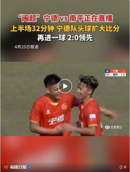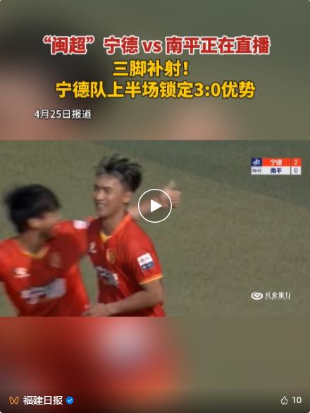 开赛仅10分钟,宁德队踢进首球,4号林郁科补射破门。