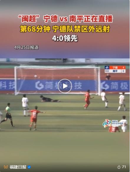 第69分钟,宁德队14号林修航成功破门,将比分扩大为4:0。最终,宁德队以4:0的比分战胜南平队。