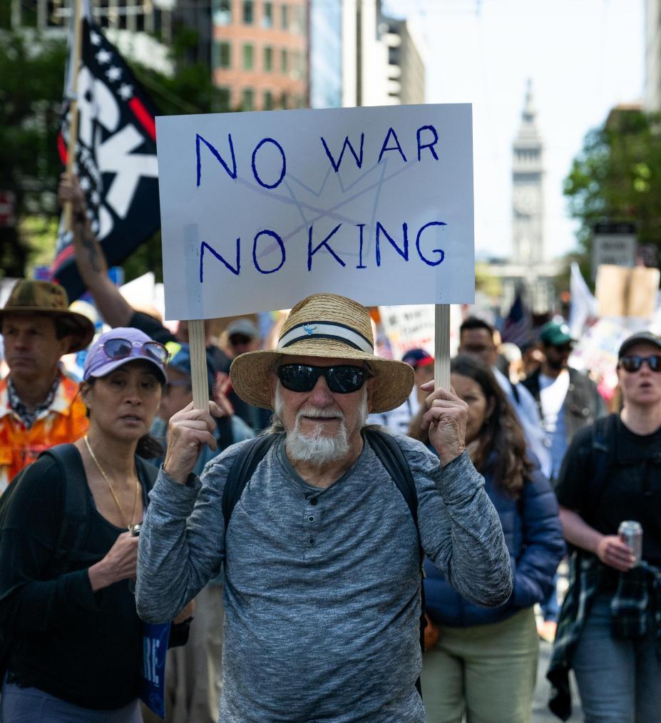3月28日,人们在美国加利福尼亚州旧金山参加“不要国王”抗议活动。新华社发(朱子于摄)