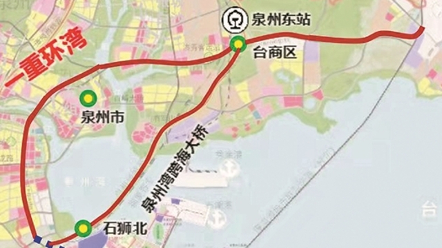 “一环湾”即一重环湾快速路,经泉州台商区东西主干道、后渚大桥、通港东街、泉州晋江大桥、晋新路,至石狮大道,全长约50公里。