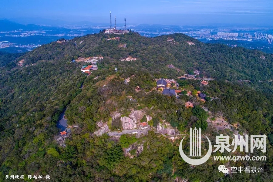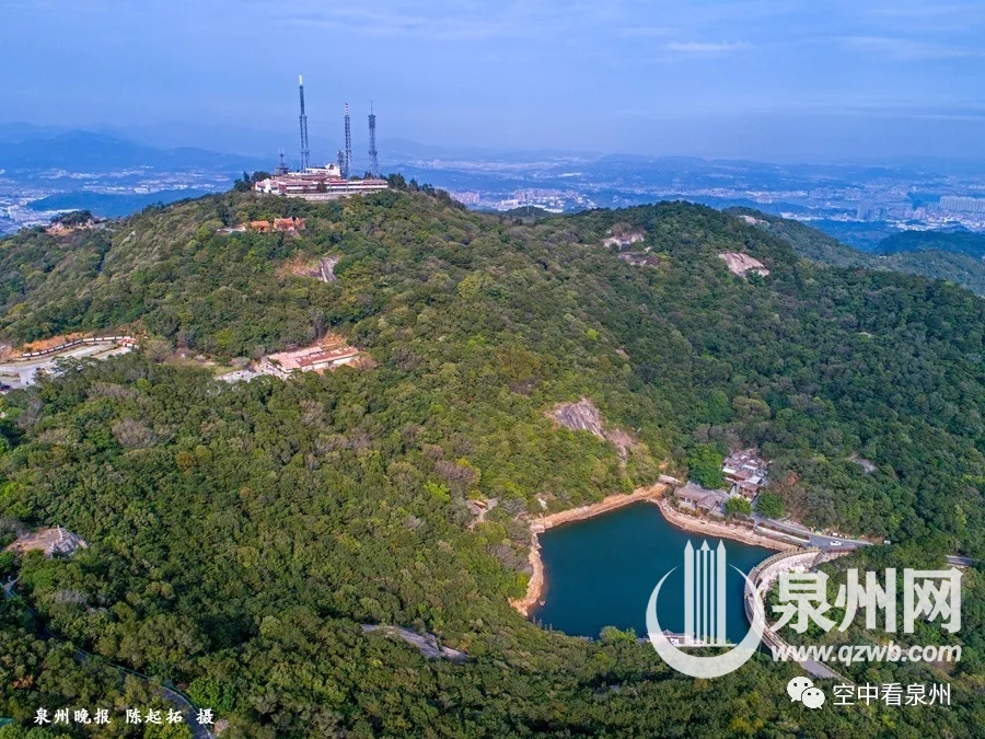 飞越清源山,天湖、南台岩、电视塔一览无余。