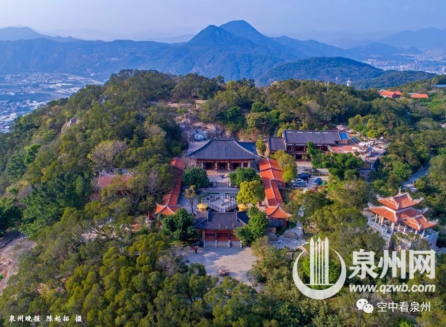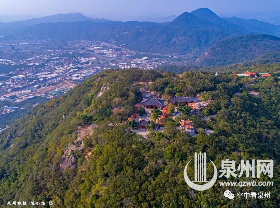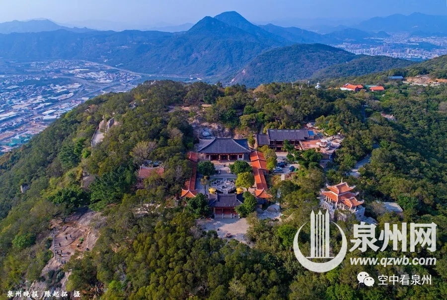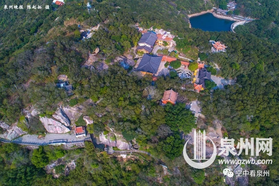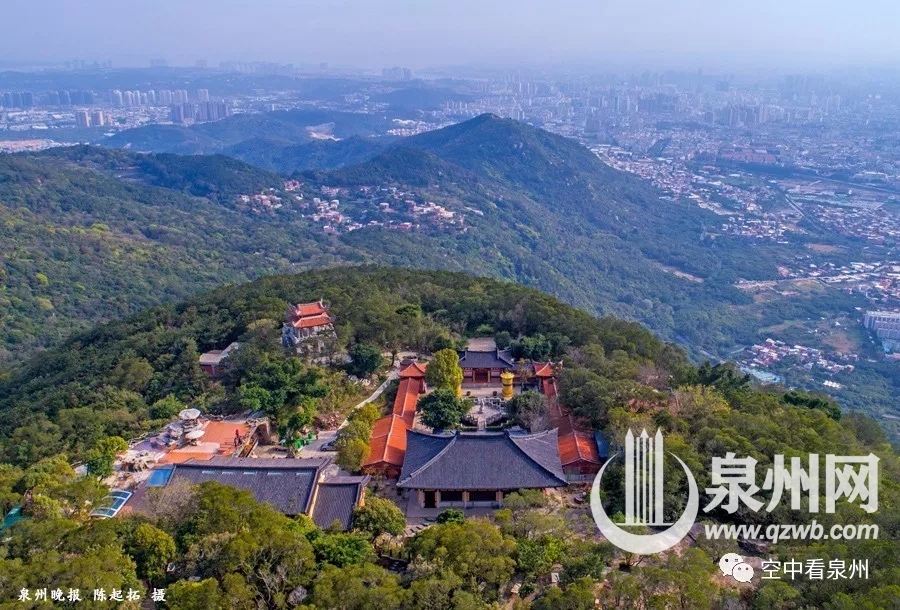 侧看南台寺,远处的紫帽山和晋江母亲河露出来了,西湖也露出了一个小角落。