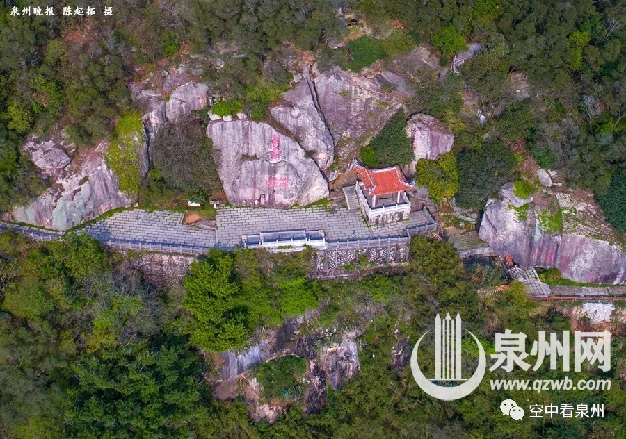 回看南台岩。南台岩上铺满石板的这一处平地,是很多泉州人上山揽景歇脚的地方。那个小亭子里有一口钟,每年除夕夜撞钟时,总能吸引许多人围观。