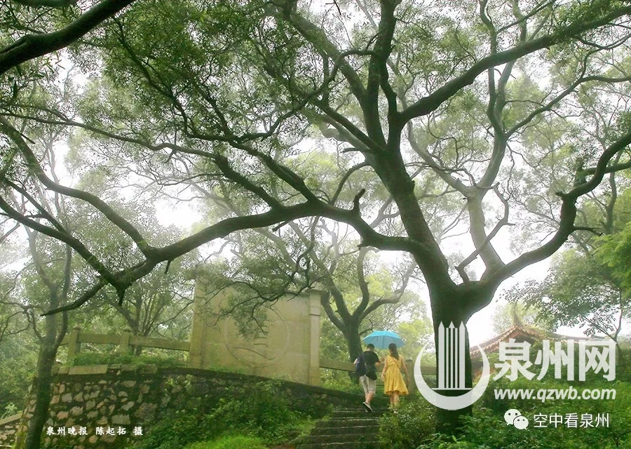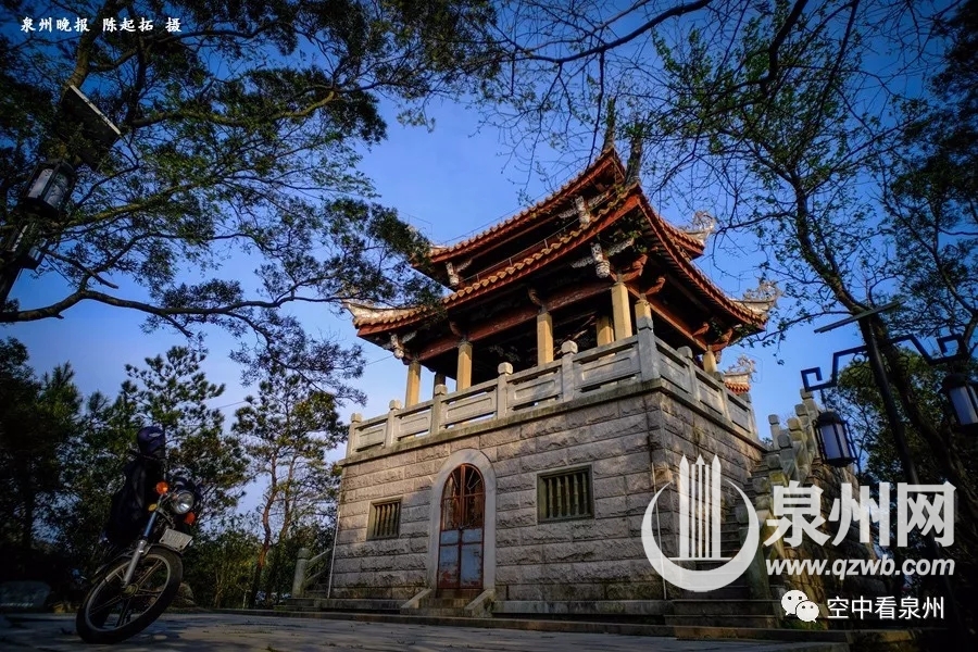 回看南台岩。南台岩上铺满石板的这一处平地,是很多泉州人上山揽景歇脚的地方。那个小亭子里有一口钟,每年除夕夜撞钟时,总能吸引许多人围观。