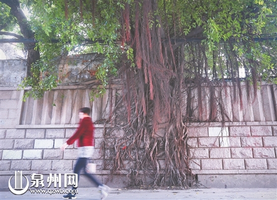 市区许厝埕的大榕树墙上挂绿