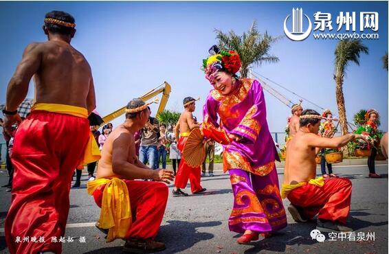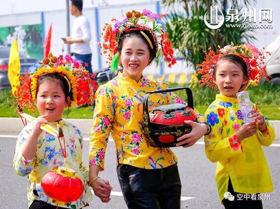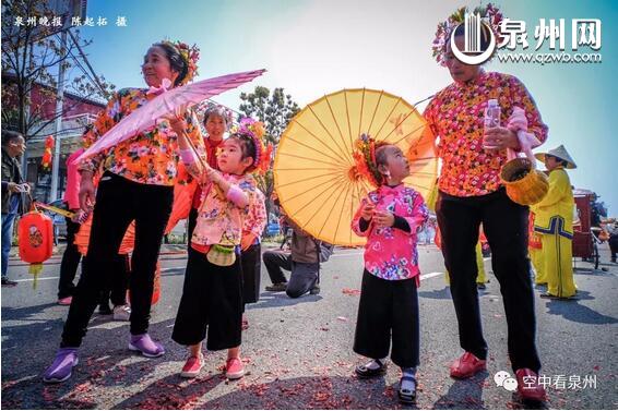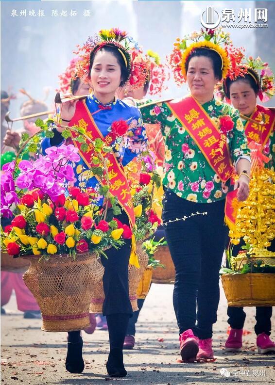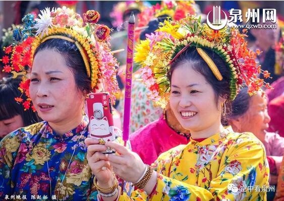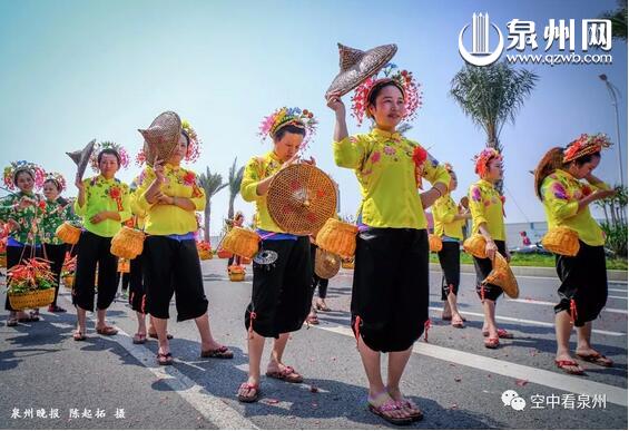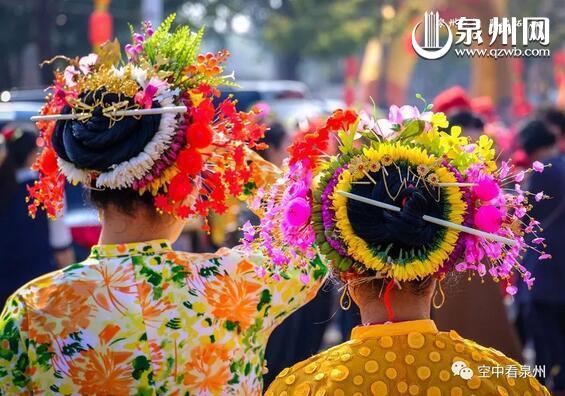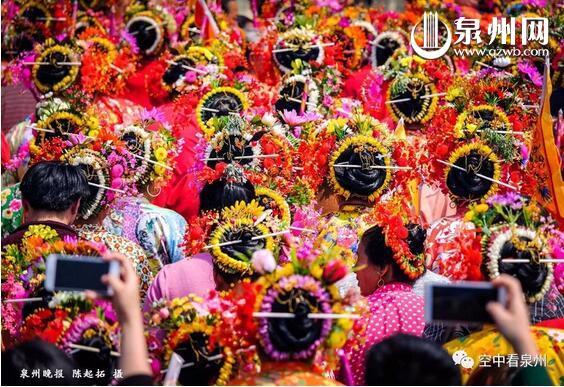 这次巡香民俗活动是丰泽区首届“海丝·蟳埔”民俗文化旅游节的活动之一。这一场热闹的踩街,最与众不同最吸引小编的是蟳埔女。她们和惠安女、湄州女并称福建三大渔女。蟳埔女身穿艳丽的服饰,头上戴着绢花或者鲜花做的簪花围。整个头饰色彩艳丽,吸引眼球,被人们称为“四季花坛”。