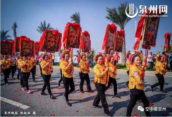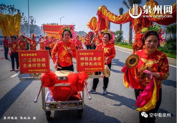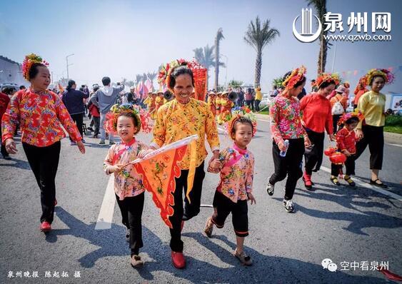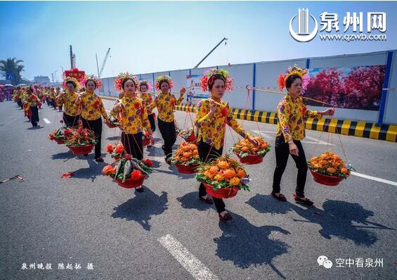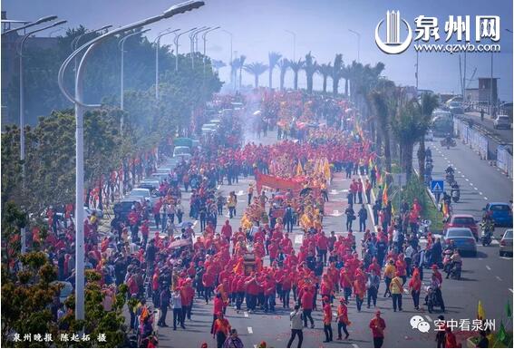 接下来,咱就看看这次巡香民俗活动的现场图。丰海路蟳埔段,为了这场民俗活动,丰泽区有关部门做了不少安排,早上进行了交通管制。从高处望去,巡香队伍由不同“阵头”组成,队伍浩浩荡荡。