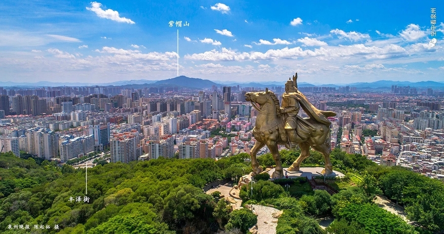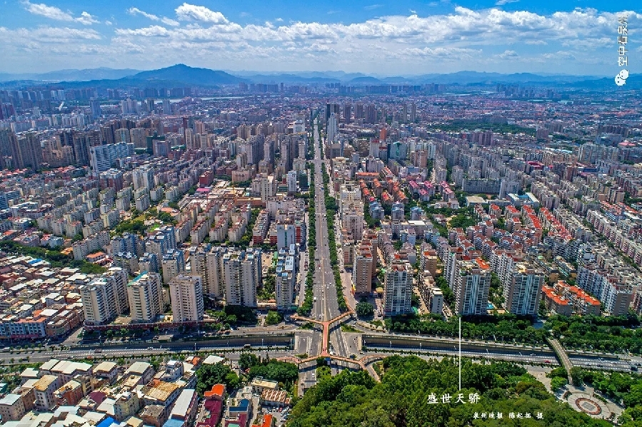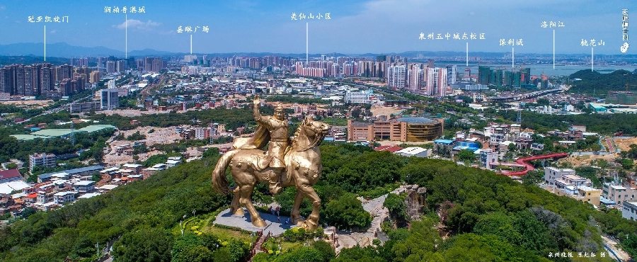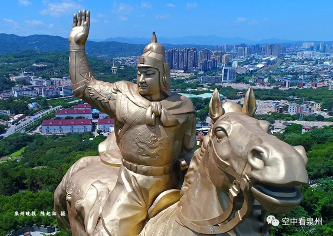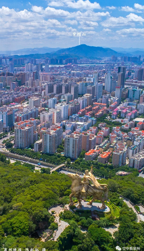上图的山,是紫帽山,水,是晋江母亲河,城,当然是泉州市区。这个视角,是大坪山上方。前些天,泉州的天气好得有点出人意料,每天醒来面对蓝天有喜有忧。忧的是,骄阳似火,出行颇受“烤”验,大白天走在户外,感觉周遭空气好像被点燃一般,简直不适合人类活动;喜的是,有了泉州蓝,咱泉州的风景怎么拍怎么美。想想看,蓝天万里,白云来去,美图唾手可得,怎能躲在室内吹空调?今次推送,让我们看看航拍大坪山的美图,除了高耸昂扬的雕像,大坪山上方看到的泉州全景可以容易地辨别出不少地标,不知道兄弟姐妹们有没有找到自己住的地方。