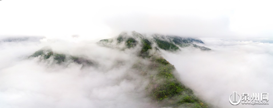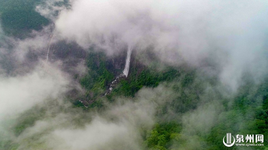 泉州网6月23日讯 (通讯员黄谷莹 李宏图 记者陈明华) 连日雨水充足,雨后的岱仙瀑布被浓浓的云雾笼罩着,若隐若现的瀑布与起伏的山峦相映成趣,在无人机的视角中仿佛是一幅浑然天成的山水画卷,宛如人间仙境。当地人说,岱仙瀑布附近植被茂盛,每当雨后湿度上升就会有大量雾气出现,雾海在山谷中盘旋的景象也比较多见。