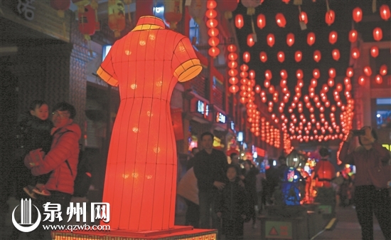 在安海镇三里街,灯光璀璨,1000多盏氛围灯营造了喜庆的节日氛围,学生挂灯和大型座灯交相辉映。据介绍,今年安海以“安平古镇·海丝名城”为主题,结合闽南多元文化元素和科技手段,融入泉州特色民间工艺技法进行花灯设计、制作,突显创新创意。