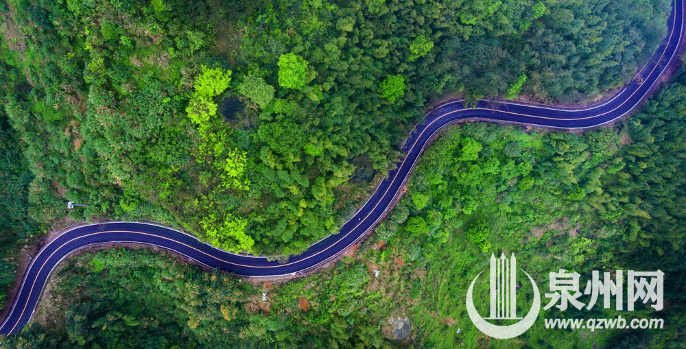 航拍镜头下,通往永春仙夹镇的乡村公路宛若云中盘龙。