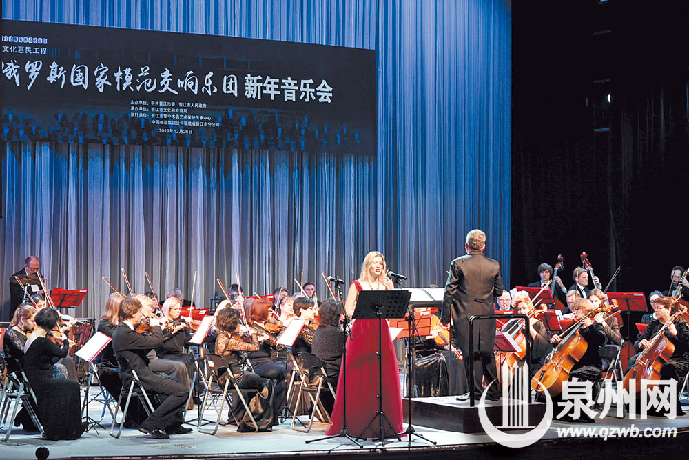 26日晚,俄罗斯国家模范交响乐团新年音乐会在晋江市举行,为现场观众奏响《天鹅湖》《华尔兹幻想曲》《梁祝》《卡门组曲》《难忘今宵》等近20首中外名曲。
