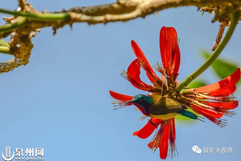 在安溪,美丽的太阳鸟则在刺桐花旁歌唱。(黄水田 摄)