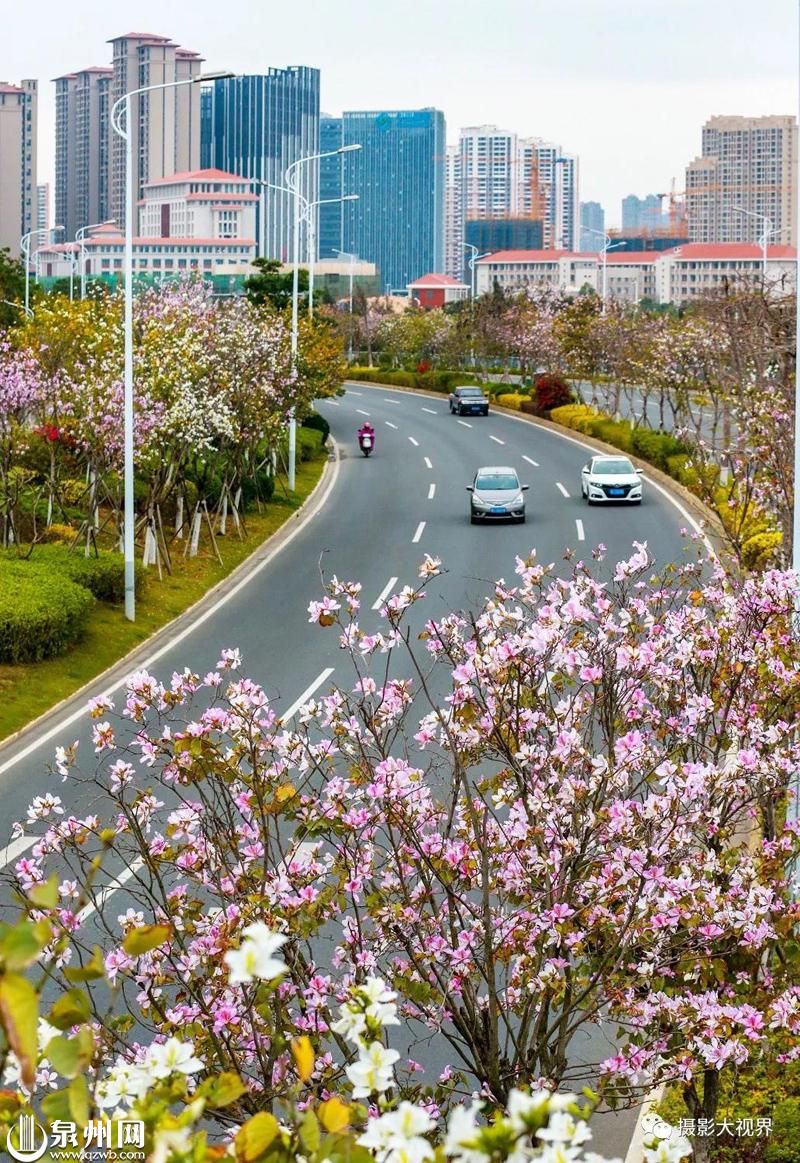 泉州丰泽山海路的宫粉紫荆开满枝头,三月的泉州繁花似锦,一片一片,一丛一丛,一路一路,春意盎然。(陈英杰 摄)