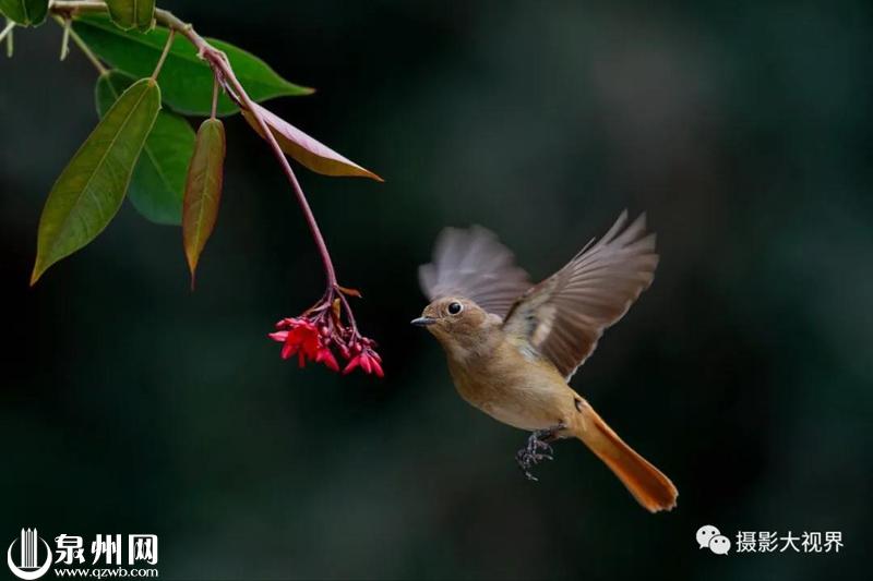 春眠不觉晓,处处闻啼鸟。北红尾鸲正在晋江的花园里追逐。(吴东塔 摄)
