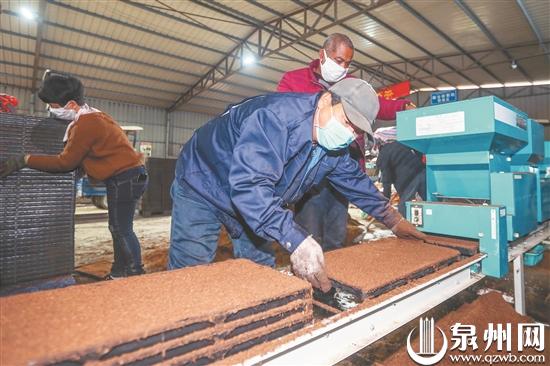 昨日,位于石狮蚶江的国家级农业合作社—协盈农机合作社里,人们在育秧机旁劳作。(陈起拓 摄)