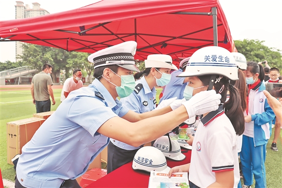 现场家长林灿辉说,家长是孩子的第一个老师,做好“一盔一带”才能安全常在。希望所有家长行动起来,一起做交通安全的践行者。该校五年级的林婧宣说,交通安全关系到每个人的生命安全,同学们要认真学习交通安全的法律法规、遵守交通规则。有家长接送的同学,要告诉家长驾驶摩托车和骑行电动自行车时,不仅自己必须要佩戴好安全头盔,也要给乘行人员佩戴。