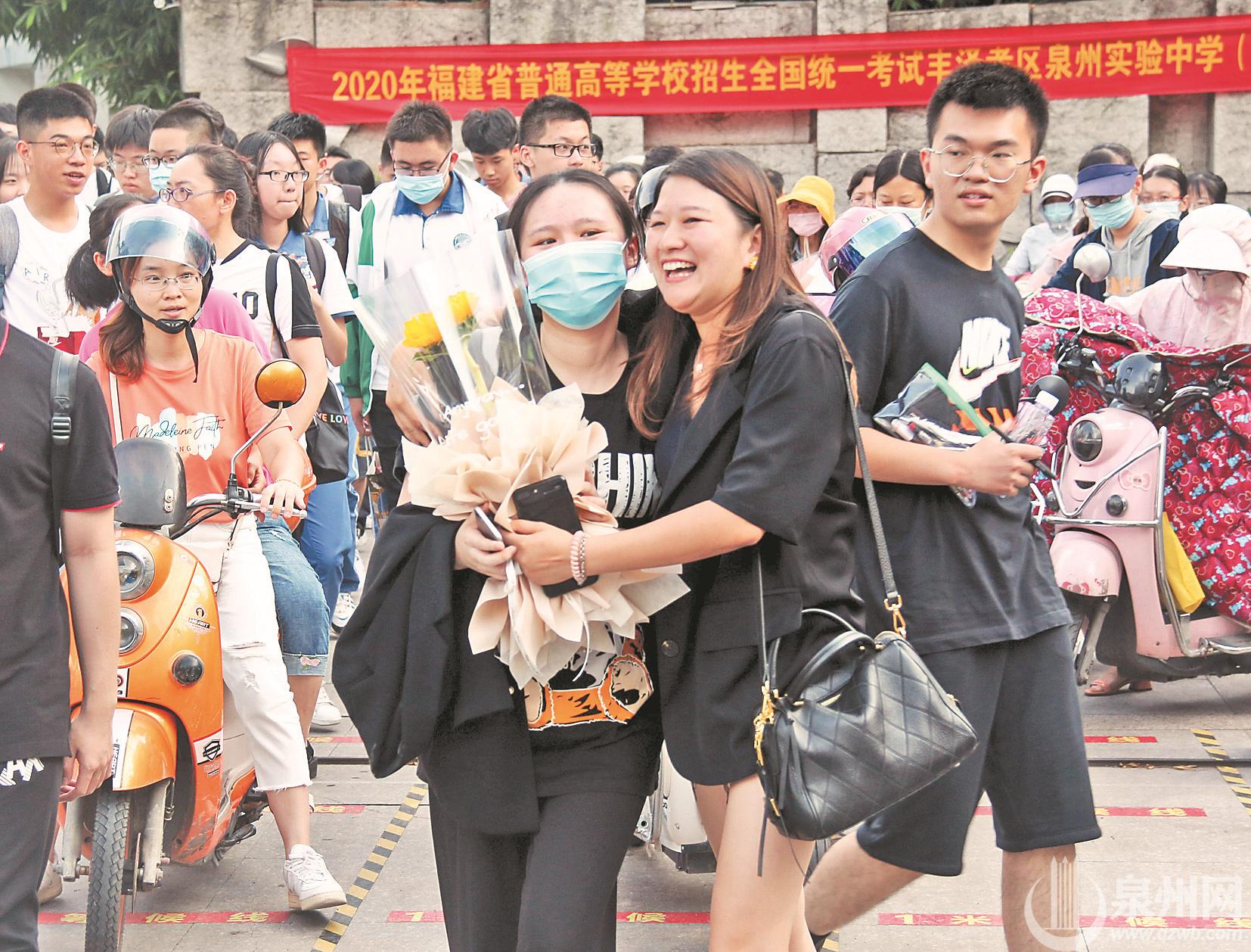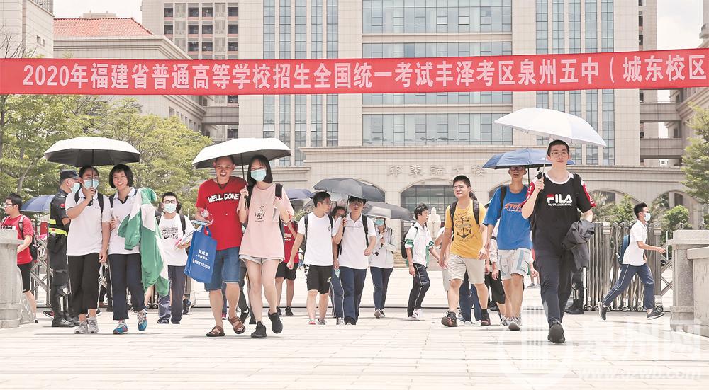 昨日,泉州五中(城东校区)考点,考生走出考场。(陈起拓 摄)