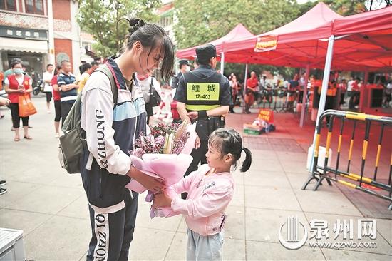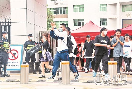 昨日上午7时10分,晋江市公安局永和派出所民警胡坤源和同事做完学生接送车辆安全检查后,全程警车开道,用了30分钟安全将213名高考学子送到了指定的考点。
